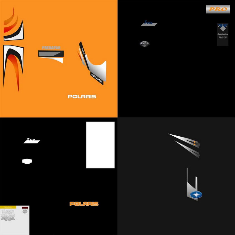 I’ve unwrapped the model quickly and concentrated on the parts that will have details on them mainly then went to Photoshop and drew the stickers and all details, if I had time to do it again I will unwrap it probably and add proper dirt or make a blend material and add dirt to give dirt a different material. I did give some parts blend materials with masks to give for example the Polaris logo a different material than the body