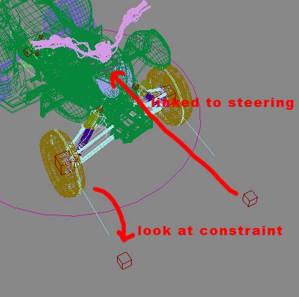 To control the rotation of the wheels according to the steering I did use strange method to quickly make it without using wire parameters and figuring out the right axes and parameters