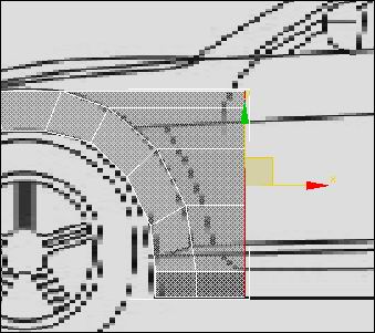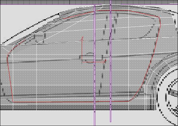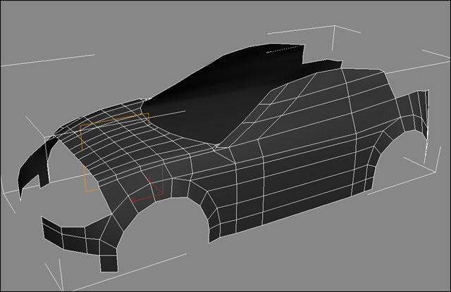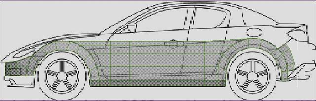 Again you choose the outer edges of your plane and then you run them along side the body of the car, make 2 or 3 stops un the way so that you create some segments for later use.