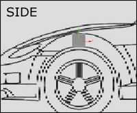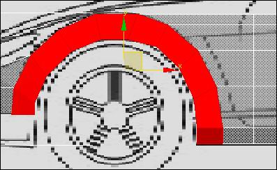To start modelling you create a plane with no segments, place the plane at the front just above the wheel. Make sure that the plane is positioned correctly in all viewports.