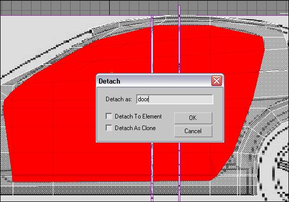 Now go to the polygen selection and choose all the polygens that make out the door, choose detach “to object” and name it door. Dont choose anyone of the detach options…