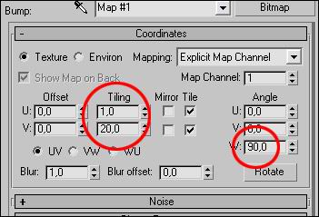 In the tiling slot set V to 20 or the prefered number and set the W angle to 90.