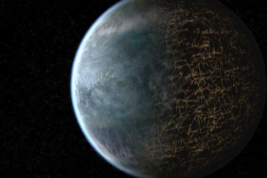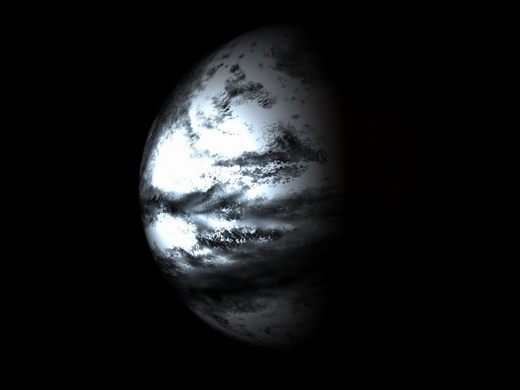 Camera. Take a usual camera and put it at such an angle that part of the planet is illuminated and part is in the shadow.