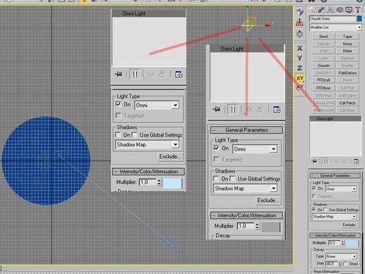 ATM omni – we set the same conditions for it as for Surface omni but Shadow parameters are obligatory. They can be made Rayshadow depending on the render used.