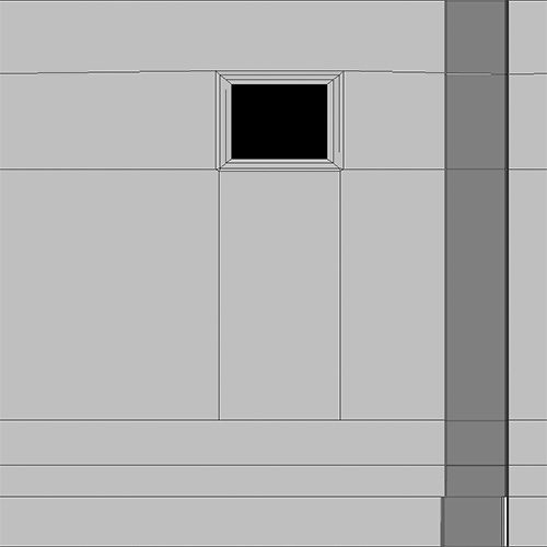 The texture painting process is quite similar for all the objects, so I’ll explain it only for the back wall, the one with a window on it. So, first of all set the UV to planar, then export the wire frame. You can either take a snapshot of the view port (if it is a planar UV) or use the Texporter plug in.