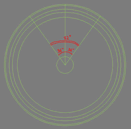Further it is convenient to draw the Circle splains for good orientation. Naturally, they must be drawn at disc outline