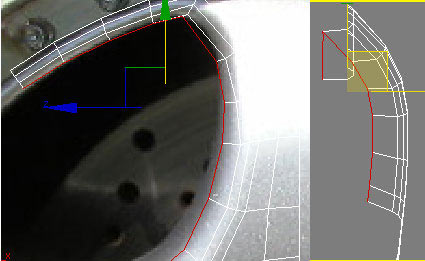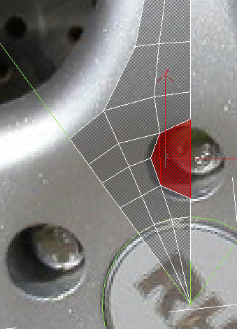 Now cut the the hole for the bolt. Cut as in the picture with Cut instrument and delete the polygons marked out in the picture: