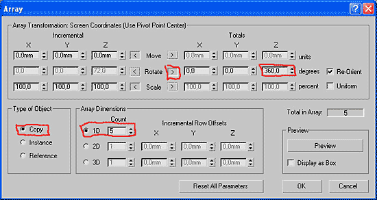 Next select our disc and in upper menu(where File, Edit, View buttons are placed) select Tools->Array. After that do everything as in the