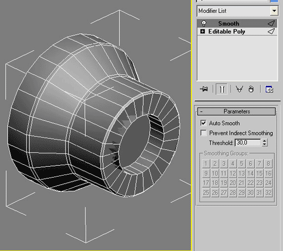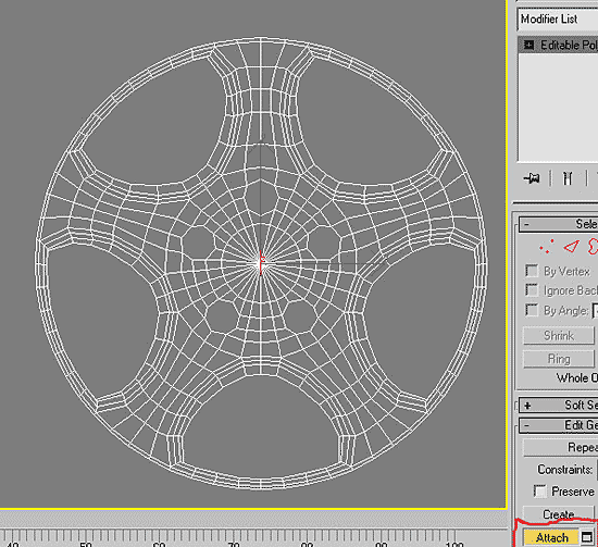 And convert it in Editable Poly. After that attach our central part to it and apply TurboSmooth modifier.