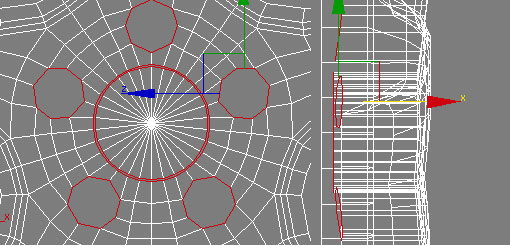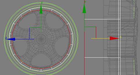I decided to do low-poly nuts on the central part outer perimeter cause it’ll save many polygons. From the cylinder(above 20-30 sectoins)create such a form: