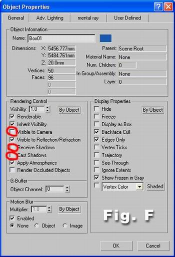 Right click on the box and go to the properties, un-check visible to camera, receive shadows and cast shadow (Fig. F)