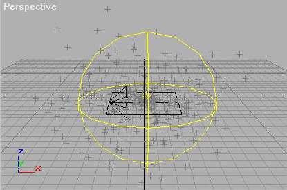 5. Create a particle SuperSpray with the following settings and place it inside the center of the SphereGizmo.
