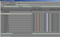 Open up the Spreadsheet and change the property bank to “Light Properties: Basic”. Click on ControlSkyLight’s intensity entry and then shift click on SkyLight(15)’s intensity to highlight them all. Now click on the little box with the “E” in it and click “yes” to create intensity envelopes for all the lights. Repeat this process for the color property of the lights.