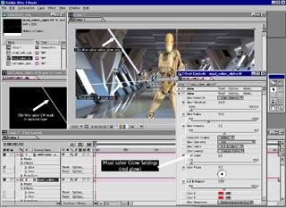 Go ahead and load up the lightsaber footage first. Then drop the blade footage on top of it. Yes, the blade layer will completely over-write the bottom layer. Right-click the Layer under the Composition in the bottom window (or go into the Layer Settings menu) and change the Transfer Mode to “Screen”. You’ll see your background footage pop through and the blade will still be there. Hopefully it’ll be in the same location as the lightsaber itself. Go ahead and play through the footage (a RAM Preview works well for full-speed previews) to make sure that the blade and the saber are properly aligned throughout the animation.