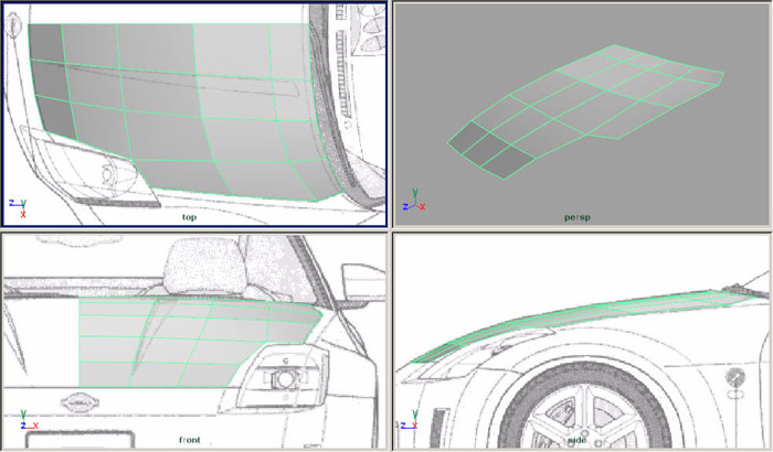 At this point the bonnet can be considered (nearly) finish. It lacks, in fact, still the depth sense (thickness) but we will think about it at the end when we will have completed the body of the auto. Create a new level, name it in way as better you believe and assign to it our job, so you can hide/show it in every moment.