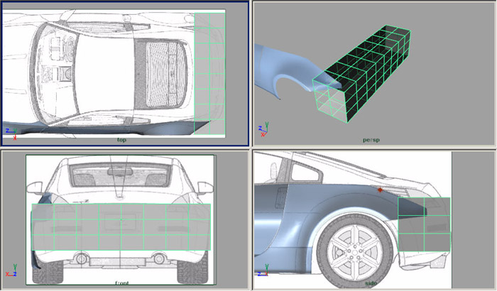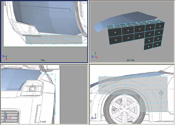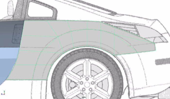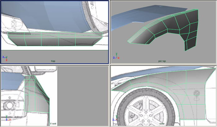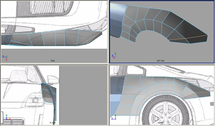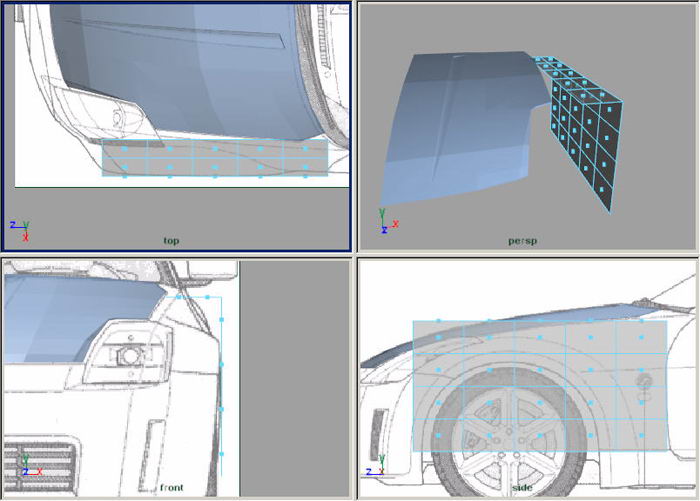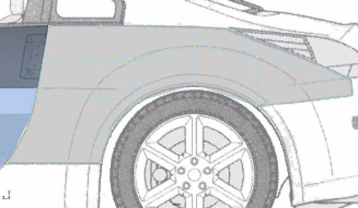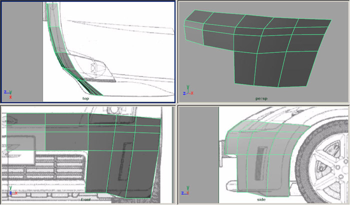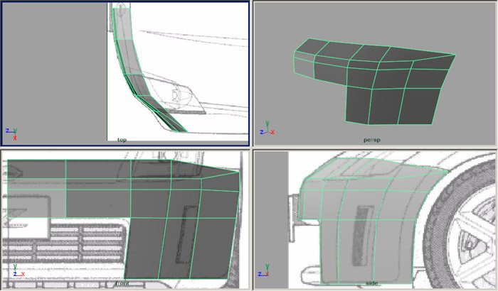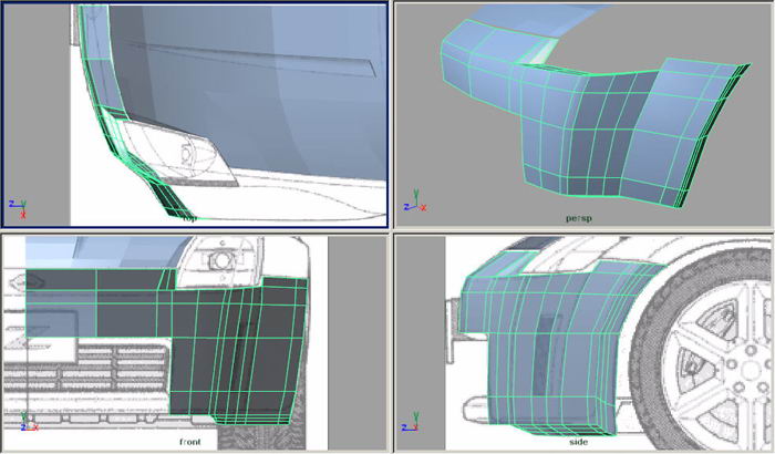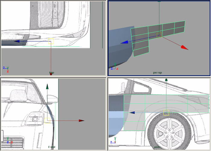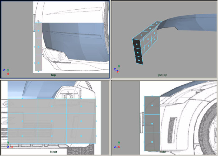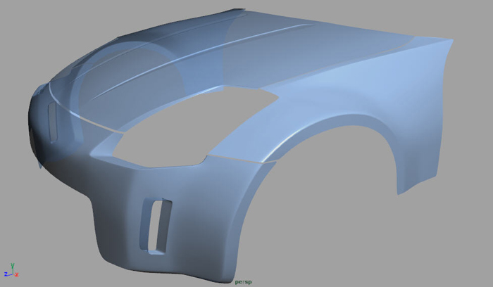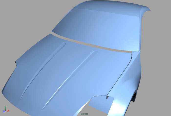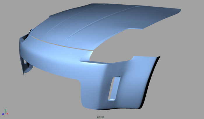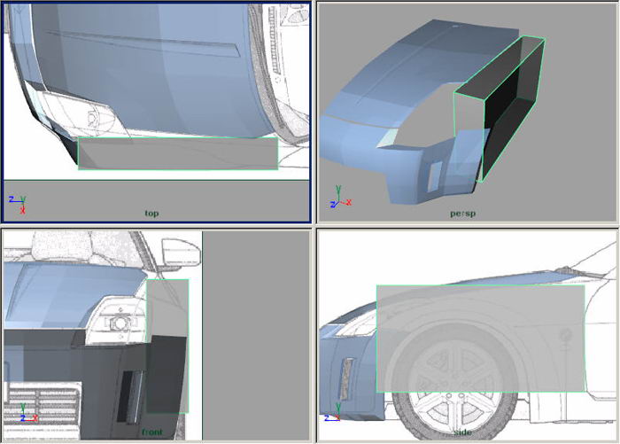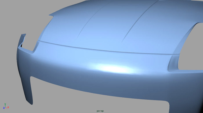 Hour we will try to give a little “depth” to our auto body. We as an example take to the frontal part of the machine (that composed from the cowling and bumper) and select these sides.