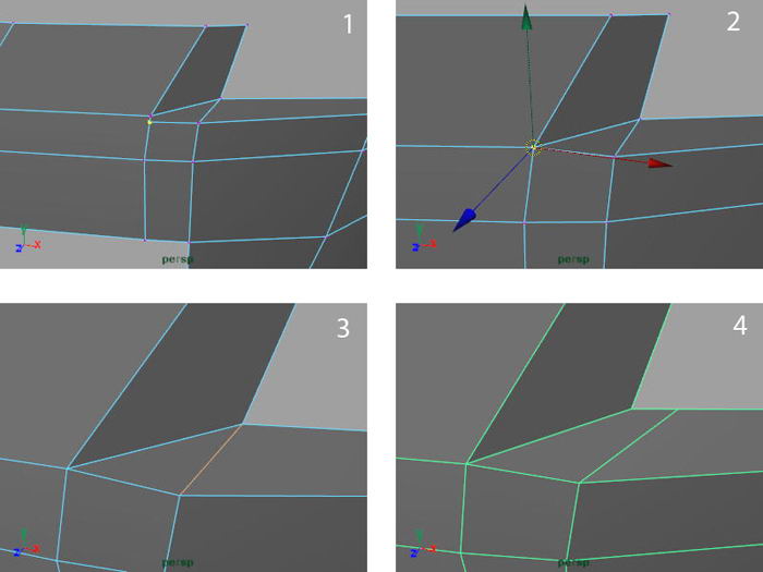 In this screen-shot I’ve shown little simple passages with which I have eliminated some problems. As far as the two union vertices concerned, not forgot to activate Snap to Points ( ) that it will allow you to more close couple the apex during the movement. After to have them united not forgot to select them and do Merge Vertices (