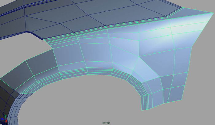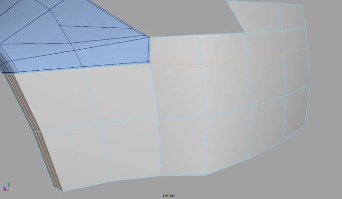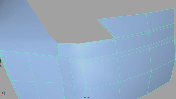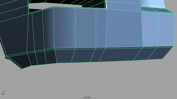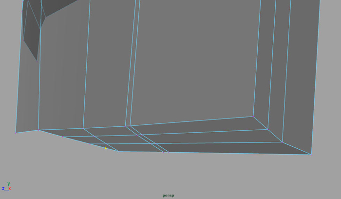 In the last screen-shot you can notice that we have create 3 irregular polygons that must be adjust: from 3, 5 to 6 edge/vertex. Using Split Polygon Tool try to build 2 lines like in the picture.