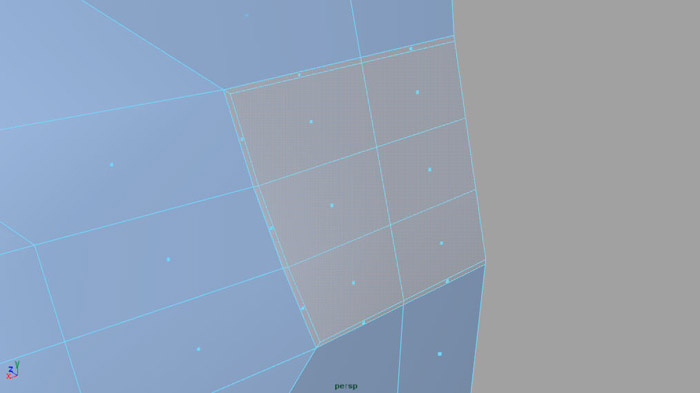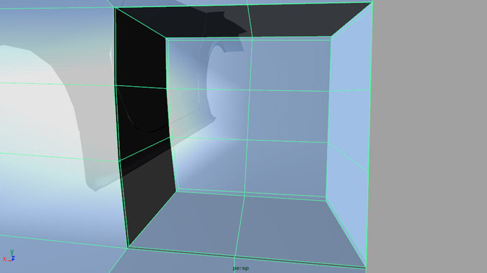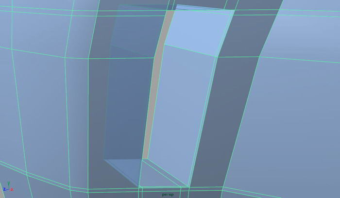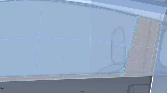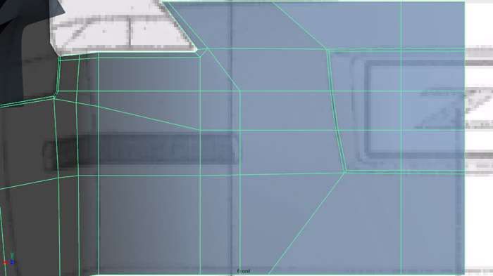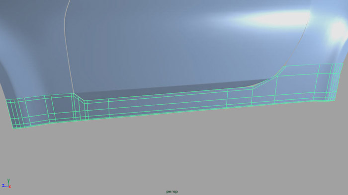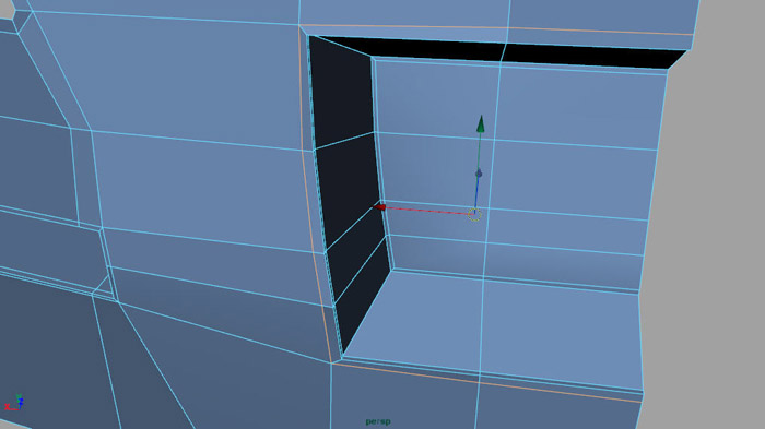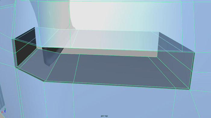 We begin to define the part of the headlight by tracing a line and eliminating the two faces that are in place of the headlight.