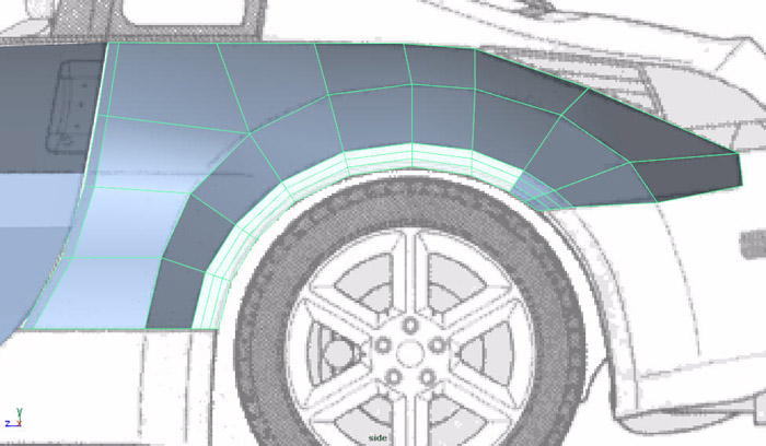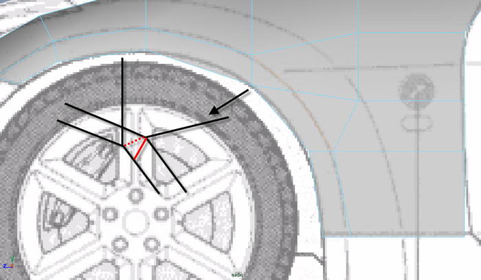 Define the arc over the wheel creating new lines and moving them in intentional position.