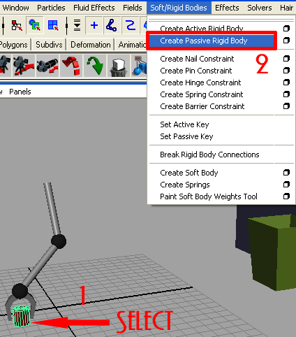 5-Now we will do something cool here arm should leave the (CAN) after frame 180, come back to frame 1 and select (CAN) and chose (Soft/rigid Bodies>>Create Passive Rigid Body) like the picture below.