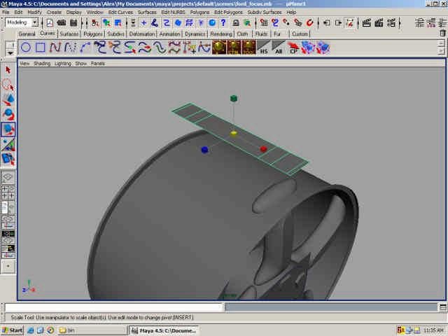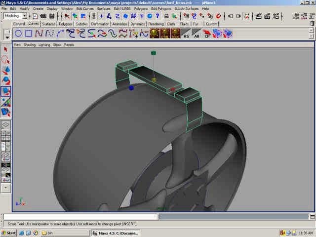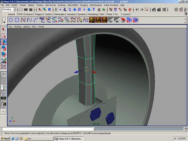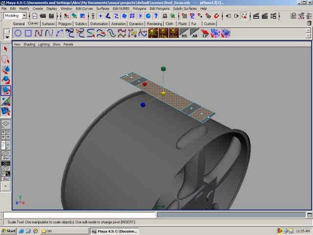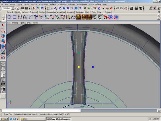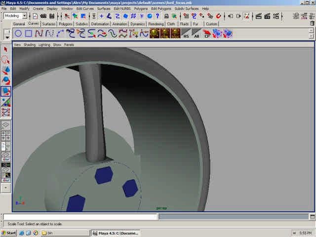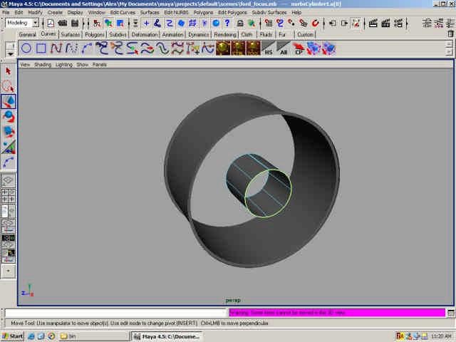 6. Now create a NURBS cylinder and rotate it 90 in the Z axis and place it like so.