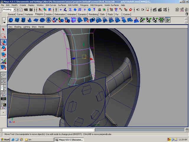26. By extracting the outer two edges a few times create the surface like below (very ease just select the outer two edges, extract them and move them down to the rim of the wheel).