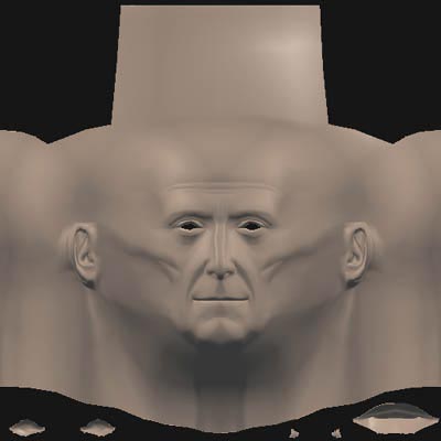 At the time I did the base for Cushings head, I did a time-lapse since it was for a speed modeling challenge. The video below is about 12 megabytes. You can click to watch or right click>save target as, and save the file. The video takes the model from cube to rough head shape ( about 30% done ) :