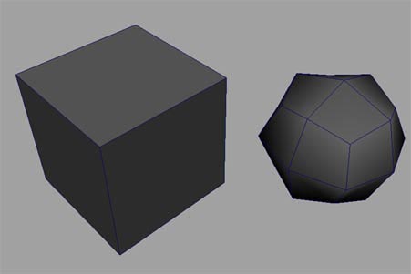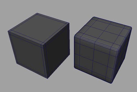 The heart of the concept is that we are no longer modeling at the vertex level, but instead modeling a ‘control cage’ that drives a higher resolution subdivided result. Here, the cube is the control cage that drives the subdivided version of it within. It’s the outer cage that we’re manipulating, not the subdivided result: