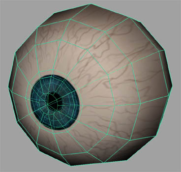 The eyeball model is pretty simple. It’s really just a question of replicating the actual structure of an eye. That way the way that light bounces off it later will be more convincing. Note how the eye has a concave iris, an actual hole for a pupil, and an outer sphere that acts as cornea with a convex lens. Note also that the geometry is all quads in anticipation of smoothing: