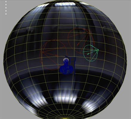 I created an image that mimicked the Death Star interior, to use as an environment map to place on a sphere in which to contain the whole scene. Final wireframe scene:
