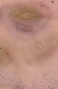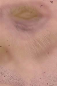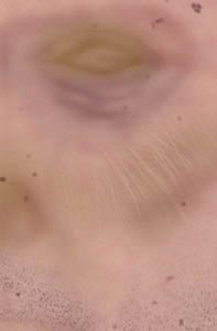 2) A reddish mottle, vaguely meant to represent blood flowing under the skin