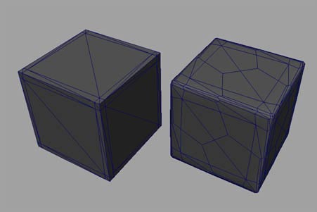 For example, If I smooth this triangulated cube, my topology becomes a mess ( and therefore how light bounces off the model will be equally messy ) :