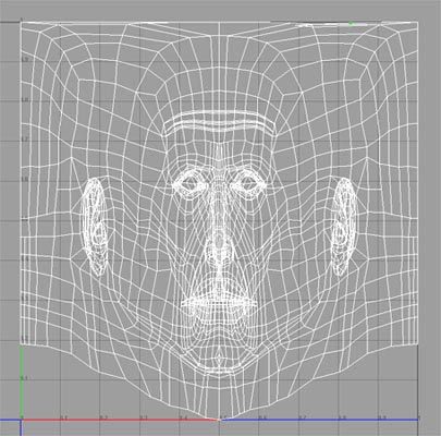 Now, whilst this doesn’t necessarily have to be used as a basis for a texture map, it’s a lot easier to ‘read’ than a wireframe for what facial features are what, and can be very useful as a reference layer.