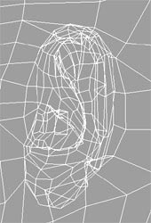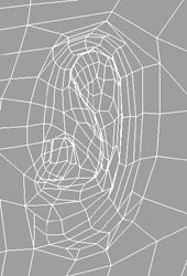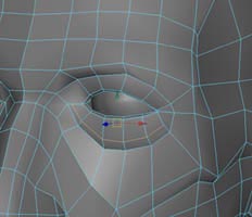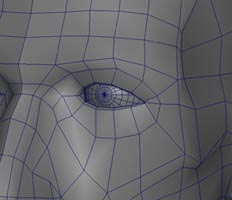 5) The principles of ‘edge loop’ modeling need to be grasped. Particularly with modeling faces. Very roughly speaking, edge loops represent muscle groups, but moreover, they represent the sub forms of the model that can be manipulated to most quickly define the overall silhouette and contours of the model. Refer to Bay Raitts page ( of Weta digital and Gollum fame ) to see an overview and far better explanation of ‘edge loops’ here