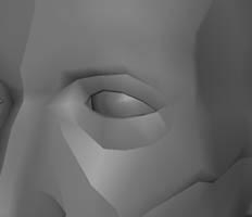 It’s after this point, that I can then worry about detail. The bag under the eye for instance, will need more loops within it to give it some form. Once I’ve added that edge I can push it out in Z to ‘fill out’ the eyebag shape a bit more: