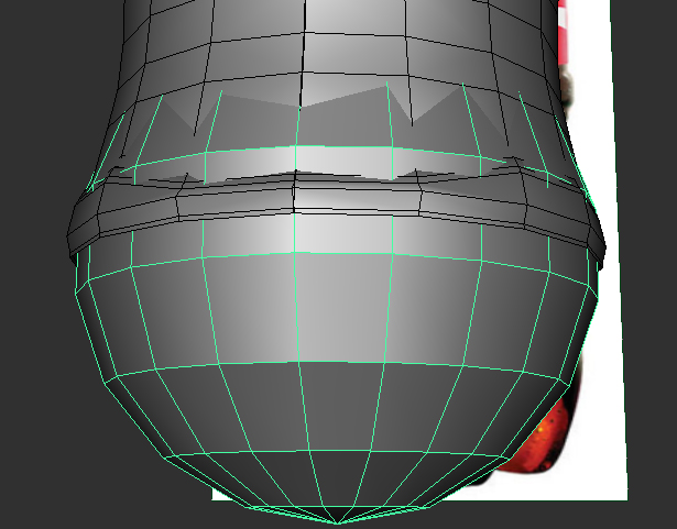 Make sure the sphere radius is close to radius of middle part; don’t worry if they don’t match exactly inch by inch together since we later merge them together. Also, you notice that the number of subdivisions differs for each part. Don’t worry now, later we have to add and delete some edges to middle part to match it with the bottom part.