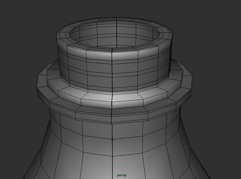 Once you are done, merge all the vertices together and extrude the middle towards inside where middle and bottom part are connected. Call the new object “Bottle”.