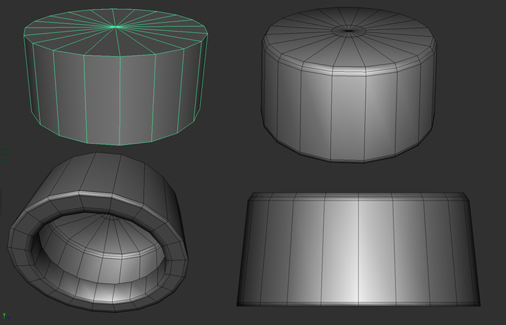 Tip: While middle object is selected press”3″ on your keyboard to see the poly in smooth preview. Press “1” to go back to normal mode. Notice this feature is only available for Maya2008 and higher…..