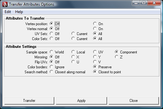 to transfer one object’s UV map to another object, first select the object that has proper UV layout and then the second object with no proper UV layout, then go to Mesh “Transfer Attribute Options” and in this case set the options as following:
