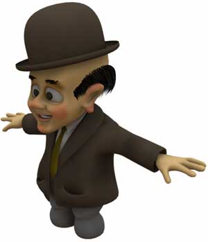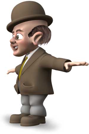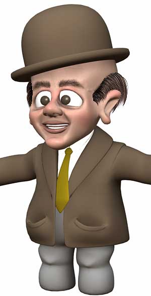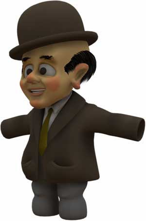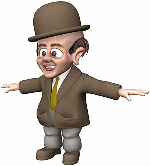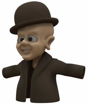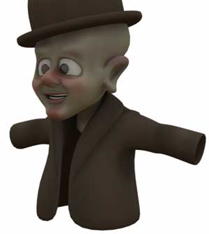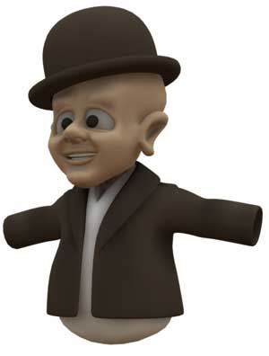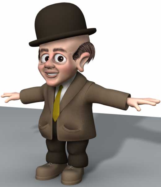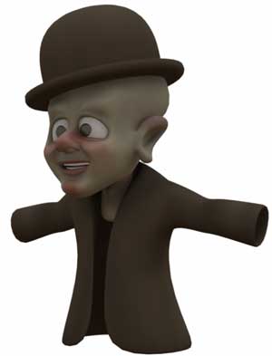 The eyes is now constrained to two locators, so I can move them around and the basic character is now done. Next step is to make different facial expressions so I can animate his face. Other things I can think of that needs to be done, is to make a skeleton for him and make some props. I already have plans of making a suitcase and an umbrella, but more on that later. |