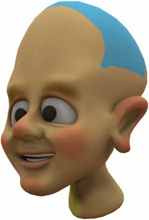 | 8. | Started to add PaintFX hair. Click on the image or [here] to see a wireframe of the model, where you can see the control curves for the hair. | ![]() |