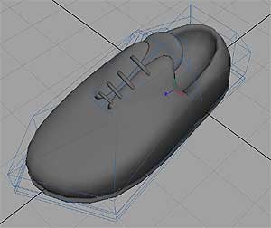 | 40. | I added the shoelacers, which are made of basic NURBS cylinders. | ![]() |