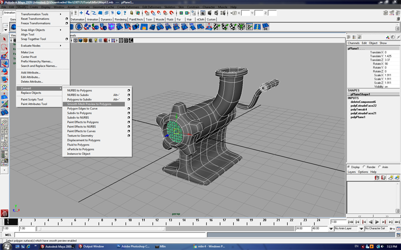 Modify > Convert > Smooth Mash Preview to Polygons .