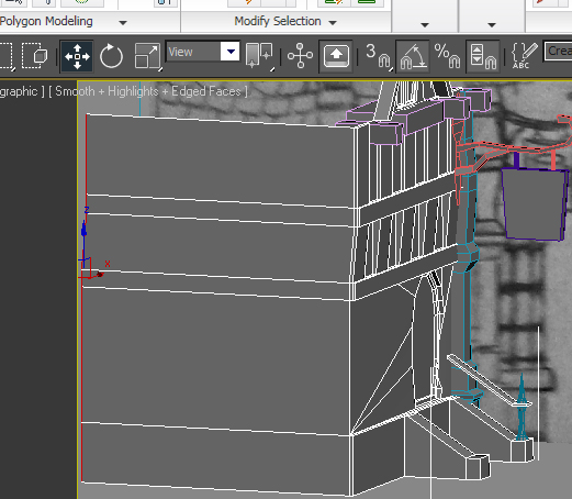 now we will extrude the wooden part so it stand out select the polygons i show on the image and press extrude.
