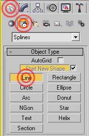 1) Open up 3ds Max. Go to the Create tab, click on Shapes, and then select Line. This will allow us to draw an outline of the soda can.