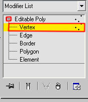 7) Make sure your can is selected and go to the Modify tab again. You will see that it says Editable Poly there. Click on the plus sign next to it and it will open up. Then click on Vertex.
