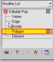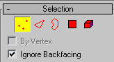 11) Now go back to the Editable Poly options and select Polygon (pictured as a red square, not a cube.) Again make sure that you put a check in the Ignore Backfacing option.