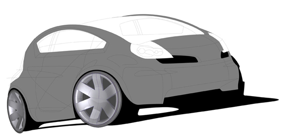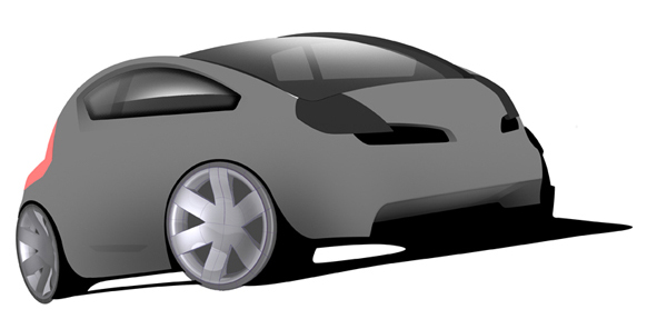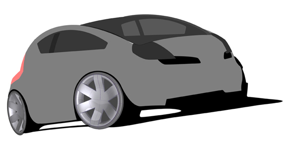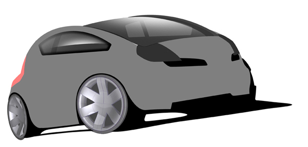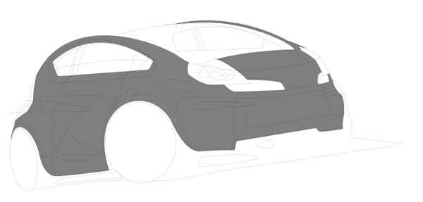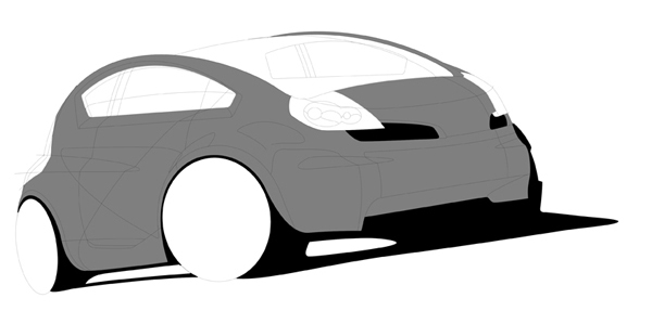 Fill the main part of the car with a midrange colour colour. I’ve filled it in with black then reduced the opacity. This way I can manipulate the colour quicker and more effectively.
