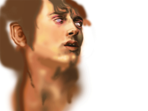 Blend the brown color I used for hairs with the skin color then painted over very dark brown and blend dark brown to the brown base color I used, so that hairs don’t look like a cutout. After that adding some details on hairs, I started painting a every singer hair with 1 pixel brush here and then used several different tones(dark to light) so that hairs look real.